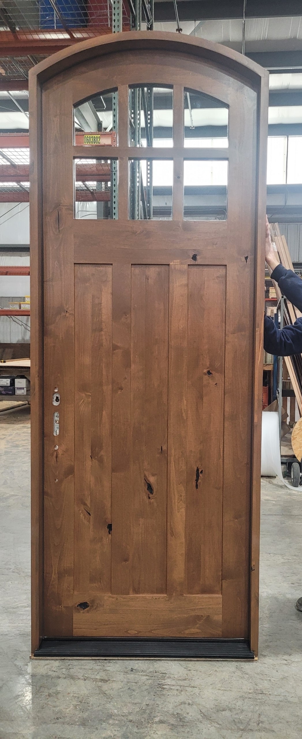 Arched 6 Lite Knotty Alder Craftsman Door with Dental Shelf