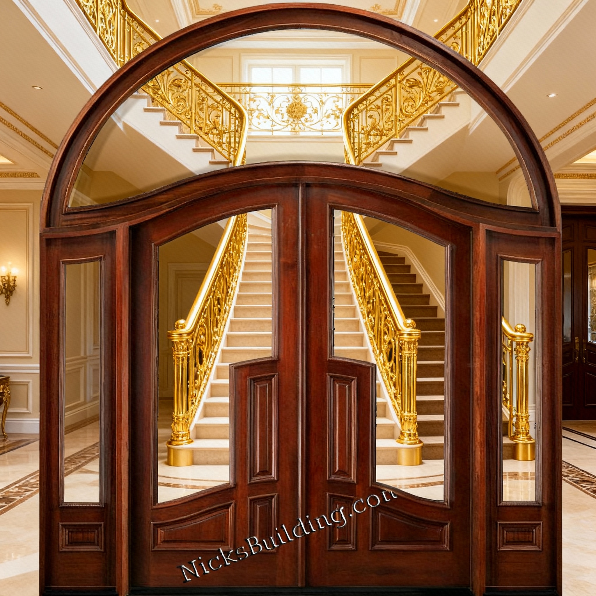 Browse our incredible selection of solid wood double doors that can give your home a grand entrance. An arched double front door is the perfect addition to a mansion, ranch home, villa, or any other large estate. Find a quality mahogany front door to match your beautiful home when you shop Nick’s Building Supply.